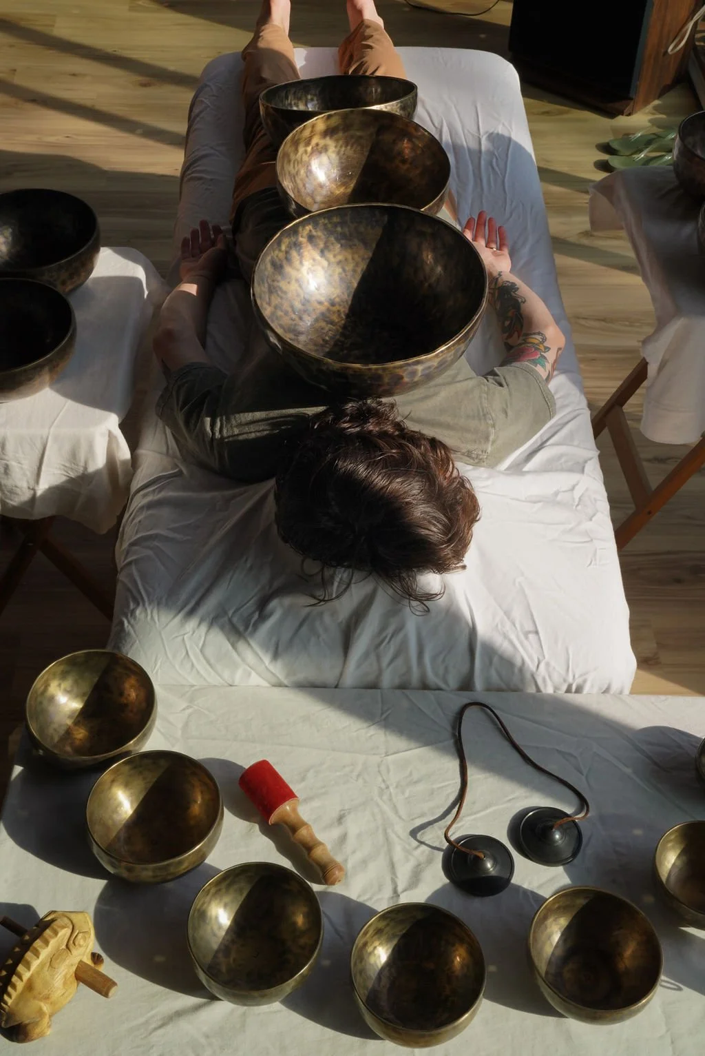 If you’re looking for something completely integrated and tailored to your specific needs, 1:1 sound healing could be the right step for you. Using large singing bowls in massage therapy takes the healing and relaxation of a standard massage to a whole new level. It's an integrative approach that invites harmony and balance, not only physically, but also mentally, emotionally, and energetically. This all-encompassing therapy truly encapsulates the essence of holistic wellness.1:1 Sound Healing SESSIONs